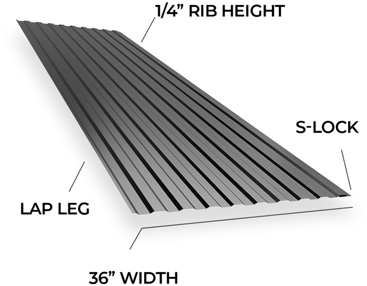 The 1/4" Lo-Pro Panel is a 3' wide exposed fastener panel featuring 1/4" ribs at 4"" on centers, making it cover a lot of ground with minimal effort.